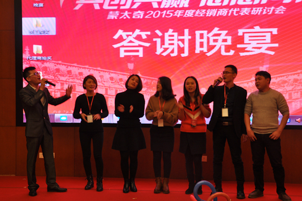 2015年蒙太奇經(jīng)銷(xiāo)商研討會(huì)暨公司年會(huì)在京勝利召開(kāi),晚間為進(jìn)一步促進(jìn)經(jīng)銷(xiāo)商與經(jīng)銷(xiāo)商、經(jīng)銷(xiāo)商與公司員工、領(lǐng)導(dǎo)人與經(jīng)銷(xiāo)商家人之間的交流和溝通。