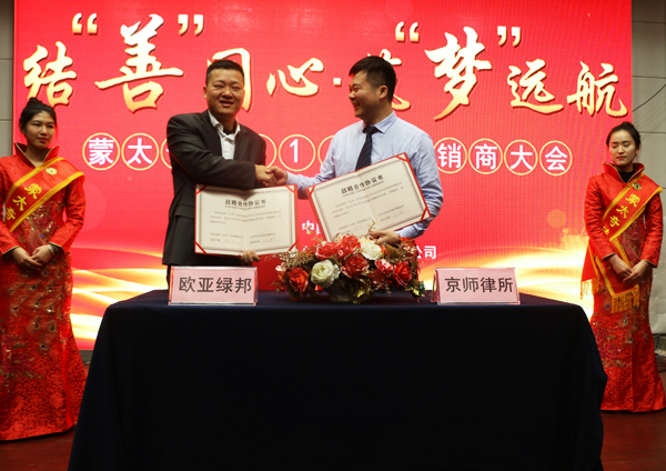 同時,為進一步規劃蒙太奇經銷商市場,避免惡性競爭,有序的經營蒙太奇品牌,讓蒙太奇經銷商家人在良好的環境中發展,與京師律師事務所簽約合作。